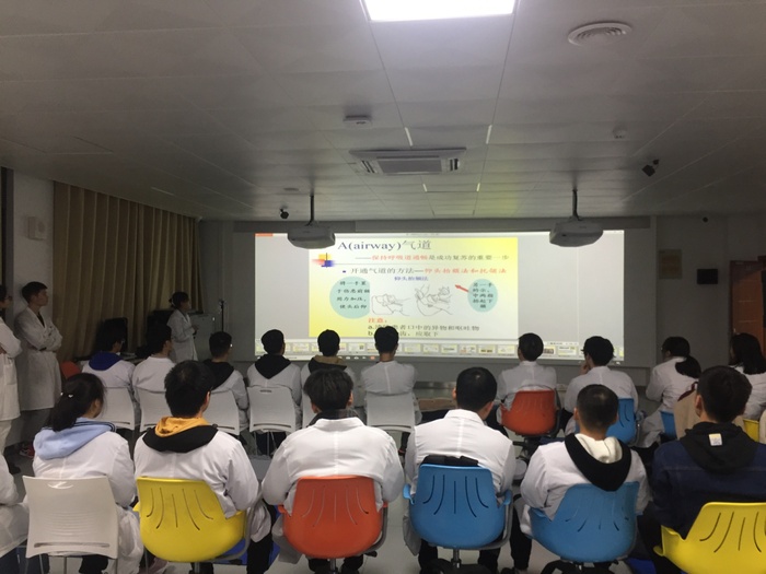 本期临床技能小讲堂主要包括心肺复苏术、胃管置入术、导尿术三个项目,由临床技能协会的“小导师”们担任主讲,2018级共有150位同学参加本次培训。