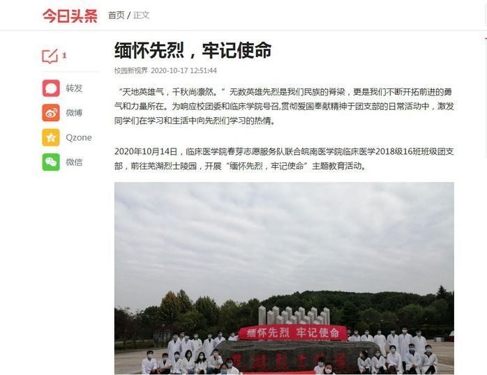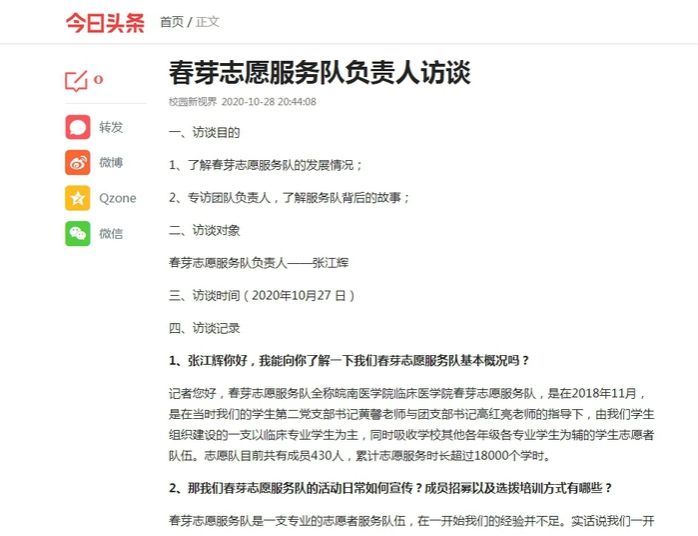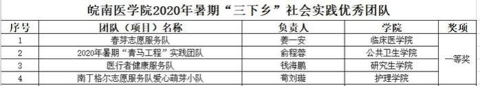 2020年春芽志愿服务队获皖南医公司暑期优秀实践团队一等奖