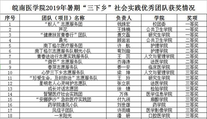 2019年春芽志愿服务队获皖南医公司暑期优秀实践团队三等奖