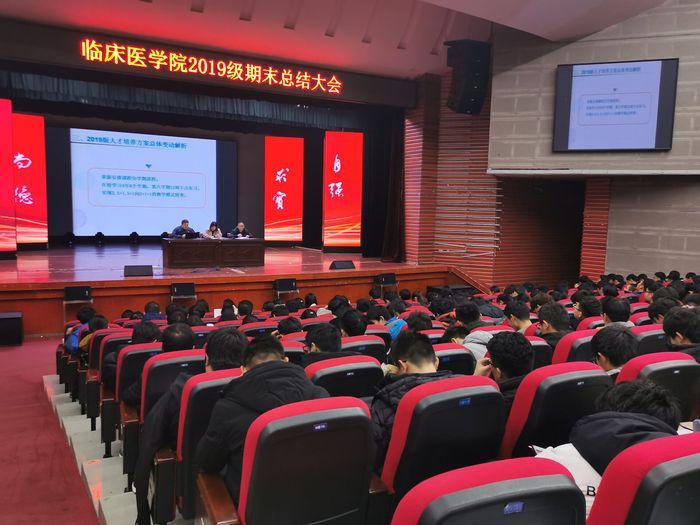 随后,宋默涵从临床医学专业培养方案修订思路、人才培养方案修订流程等方面向同学们详细地介绍了《皖南医公司临床医学专业本科人才培养方案(2019版)。康贝贝从 “回顾与收获”、“安全教育”、“考风考纪”、“辅修”、“寒假及开学注意事项”等五个方面工作逐一展开叙述。陶绍晨为同学们详细解读了2020年寒假社会实践活动和老员工创新创业等相关文件。最后,两位辅导员老师鼓励全体,在新的学期要以崭新的面貌、饱满的热情、昂扬的精神气迎接好未来的挑战,并向大家送上了暖心的新年祝福!