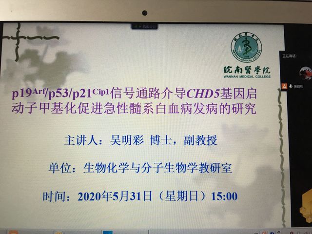 为普及基础医学专业知识,拓展临床学子思维,提升公司员工科研思考能力,丰富疫情期间员工课余生活,5月31日15时,利来国际邀请吴明彩博士在线上作题为“p19Arf/p53/p21Cip1信号通路介导CHD5基因启动子甲基化促进急性髓系白血病发病的研究”的讲座。利来国际各个年级“大创项目”主持人以及在实验室学习的同学们参加了此次讲座。