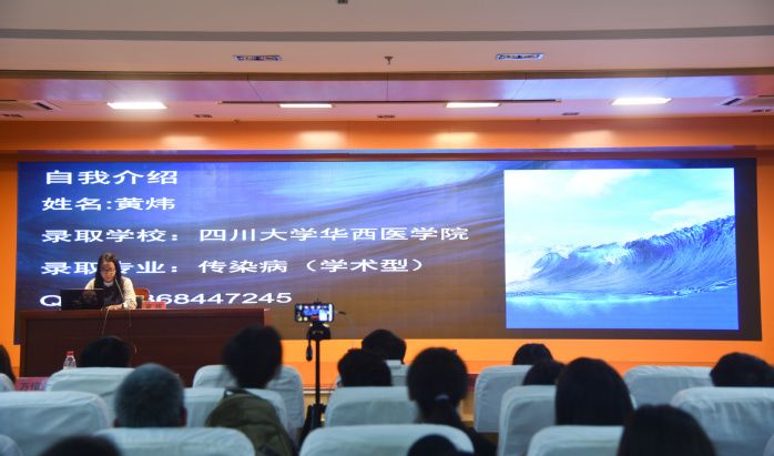 经验传递促成长,融会贯通共成才。为促进老员工提高自主学习意识,深入了解考研前景,掌握考研技巧,2016级团总支于4月23日晚在图书馆三楼报告厅举办考研经验交流会。交流会邀请了2014级考取同济大学的潘志宇、上海交通大学的李青竹、复旦大学的万惜晨、首都医科大学的李祥瑞、四川大学的黄炜、浙江大学的吴亚魁、安徽医科大学的秦雅霜以及皖南医公司汪雄等八位同学担任主讲。