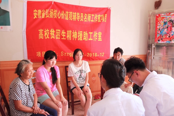 7月10日,“绿丝带”志愿服务小分队联合高校贫困生精神援助工作室来到国家扶贫工作重点县安徽省金寨县,,队员们在金寨县双河镇鹤塘村、南溪镇畈村村委的大力支持与配合下进行走访调研,得到了两村村委的大力支持与配合。队员们与扶贫组长进行深入交流,在他的组织下与村民们亲切沟通交流,通过发放问卷、访谈等方式,了解当前国家的扶贫政策和两村扶贫政策的具体落实情况,对当地农民基本生活情况和精准扶贫模式有了更进一步的认识。