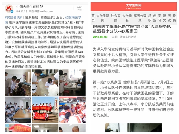 利来国际“绿丝带”志愿服务队在2018年暑期“三下乡”社会实践活动中收获颇丰,受到了大众和媒体的关注。各小分队巧用微信、微博、QQ等新媒体平台进行活动报道和品牌宣传,部分实践团队受到人民网、安庆文明网等新闻媒体的报道和宣传,产生了良好的社会反响。
