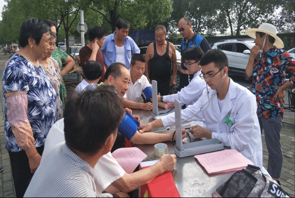 7月21日,冒着炎热酷暑,绿丝带赴阜阳实践小分队的队员们来到阜南县许堂乡胡寨村,为村民提供义诊服务,并与村民们进行交流,细致询问健康状况,耐心嘱托注意事项,宣传健康知识。队员们还采用调查问卷和现场采访的形式着重了解当地村民的经济来源、生活水平、农业发展等方面的农村建设情况。在实践过程中,队员们切实感受到基层群众对健康的渴望,这让他们暗下决心,要求真学问、练真本领,把个人的良医梦与国家医疗卫生事业的腾飞梦紧密结合,为建设健康中国贡献力量。