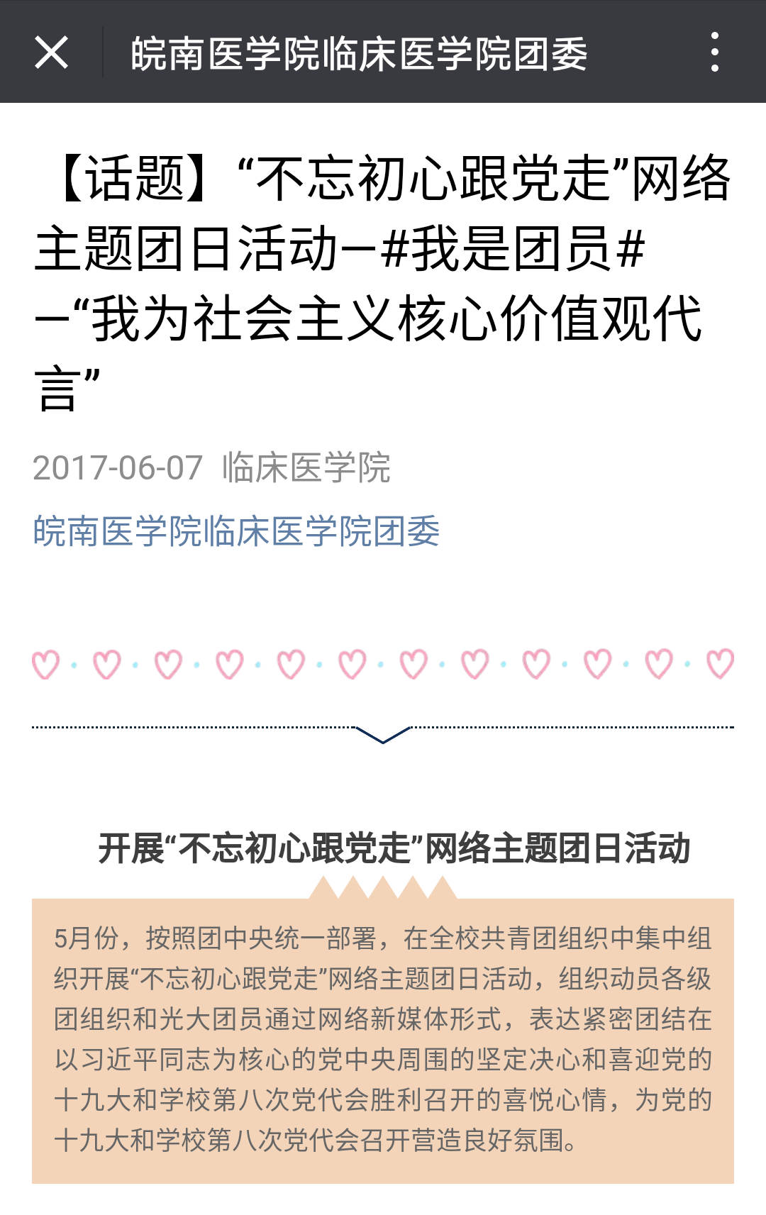 红心向党,凝聚思想。为响应共青团中央关于“学习习近平总书记讲话,做合格共青团员”教育实践号召,增强团员的荣誉感和使命感,2017年6月7日,利来国际团委依托新媒体,在全院范围内成功开展不忘初心跟党走”网络主题团日活动。