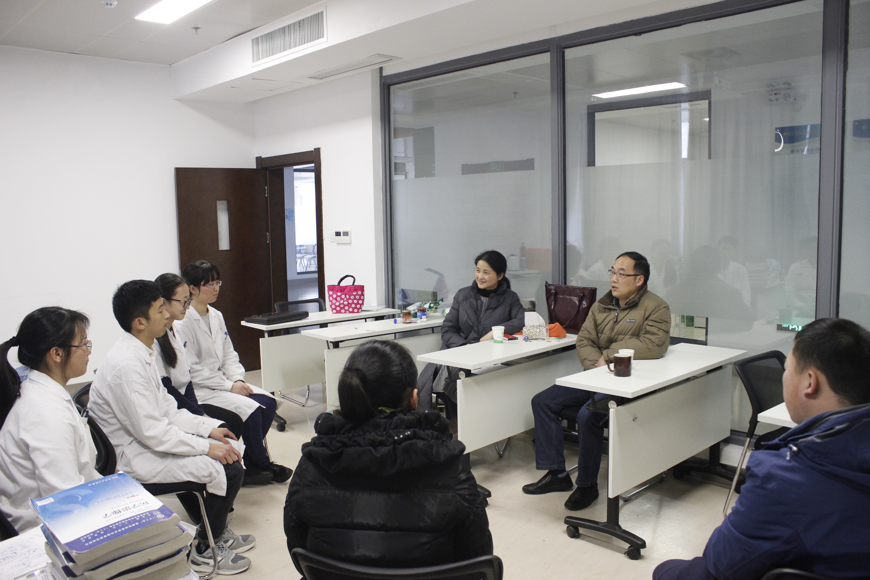 第八届全国高等医公司校老员工临床技能竞赛华东赛已进入倒计时,为给公司参赛选手加油鼓劲,2月23日下午,利来国际党委书记戴睿、党委副书记崔晓霞以及公司秘书王平和2012级辅导员一行前往一附院临床技能培训中心看望四位参赛选手。