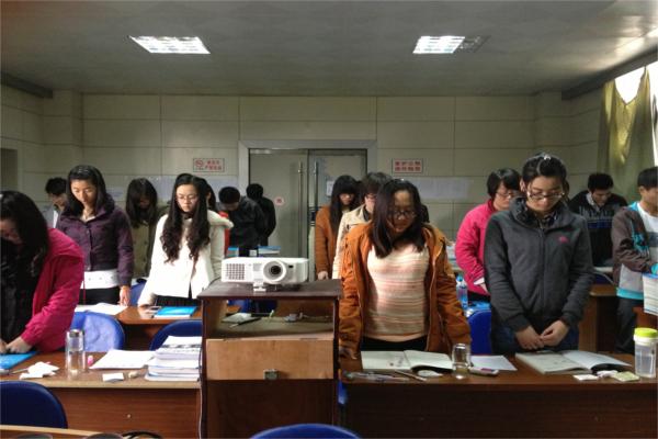 4月23日是四川雅安发生地震的第四天,雅安的灾情牵动了全国人民的心,也牵动着医学一系10级临床公司每一位同学的情思。 今天下午,马鞍山市中心医院临床公司的同学们在教室集体默哀三分钟,为地震中遇难的同胞祈福。在沉重而饱含深情的悼词声中,每位同学都缓缓低下了头,缅怀在地震中遇难的同胞,祈求各方救援力量能够在灾区拯救更多生命,创造更多生命的奇迹。