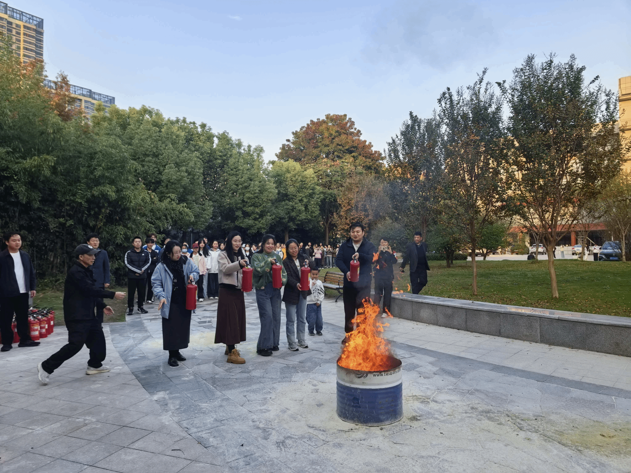 为进一步强化师生消防安全意识,提升师生在紧急情况下的应变及自我防护能力,让师生真正掌握灭火器的正确使用方法,公司联合保卫处举办灭火器使用培训及灭火实战演练。培训中,保卫处老师为师生详细讲解消防安全知识,内容涉及如何预防火灾、灭火的方法及步骤、灭火器材的使用及保养方法、火场中逃生自救等,提醒参与演练的师生们面对火灾时要保持冷静。随后示范了灭火器的使用及扑救火灾的方法,并现场组织开展消防演练;在保卫处老师的指导下,公司师生依次拿起灭火器,按照规范步骤操作,成功扑灭了模拟火源。