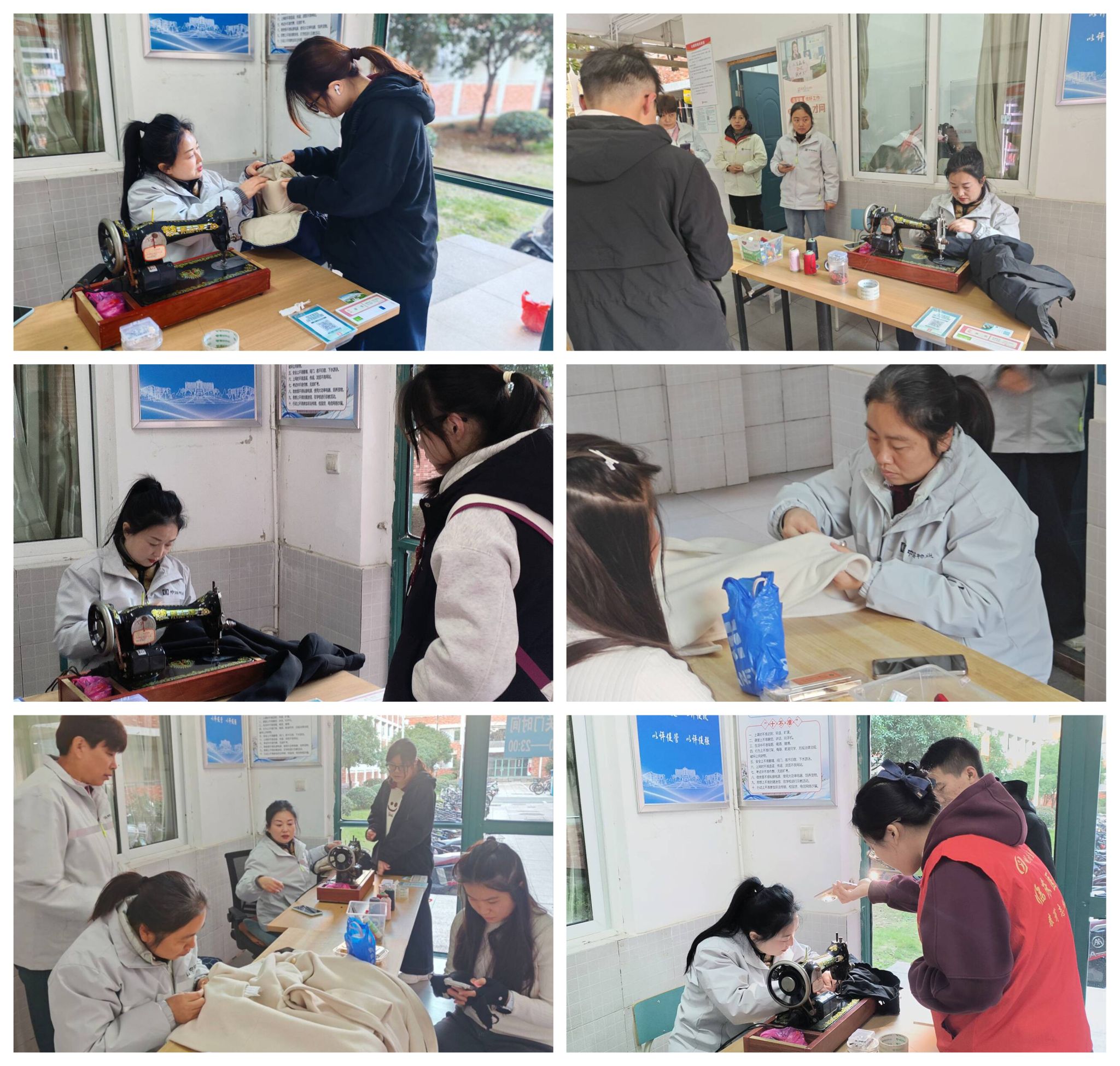 爱心缝补,织就生活服务“暖心网”。活动期间,同学们将需要缝补的衣物送到现场,物业阿姨们根据不同的材质和损坏情况,凭借娴熟的技术为同学们缝补衣物、加固纽扣、修复开线等;员工志愿者协助做好人员引导、物品登记等工作,保障服务高效有序开展。此次服务帮助员工解决衣物破损问题,以“微服务”传递校园关怀,获得员工一致好评。