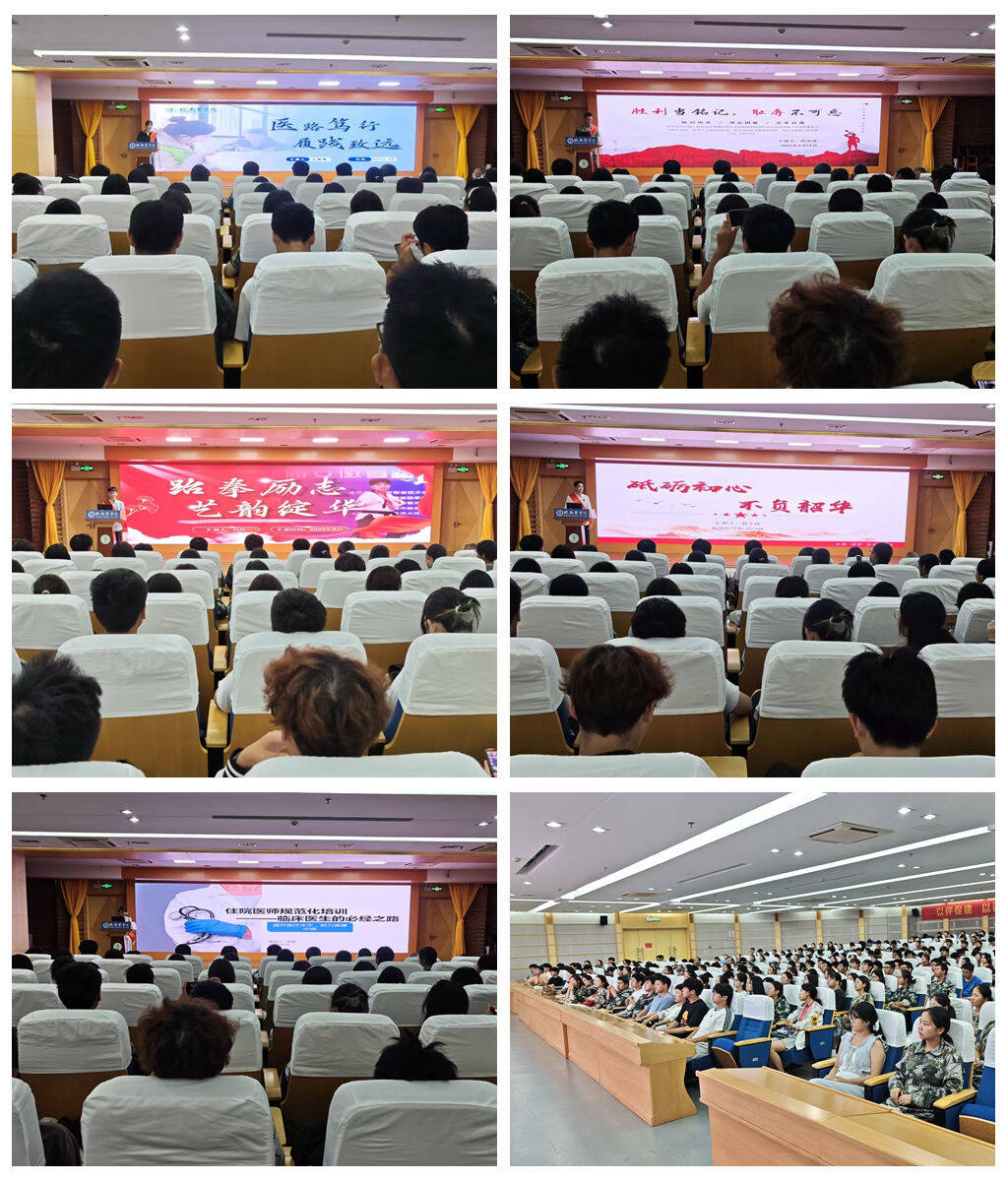 本次宣讲特邀五位覆盖多领域的优秀员工代表,以“成长亲历者”的视角送上“青春指南”。代忠意同学以九三阅兵参训经历为切入点,从退役老员工士兵的独特视角,号召同学们勿忘国耻、自立自强,将个人学识与强国建设需求紧密结合,在医学领域践行使命;王雨桐同学以挑战杯、各类创新大赛等 A、B 类赛事的国家级、省级奖项为实践注脚,分享平衡科研创新与志愿服务的方法,用“智慧突破创新、爱心传递温暖” 诠释新时代青年的多元担当;高原同学带着安徽省品势锦标赛、老员工跆拳道邀请赛“双冠军”的荣誉,围绕“坚韧与突破”主题,结合赛场拼搏故事解读体育精神内核,表示不仅是奖牌荣耀,更是直面挑战、永不言弃的勇气;聂文涛同学以连续两年国家奖学金获得者、三好员工标兵的身份,系统拆解临床医学专业的学习逻辑与核心方法,为新生绘制了从基础积累到能力进阶的“学业规划图谱”;2025届毕业生龙雨同学聚焦“从校园到临床”的衔接痛点,结合规培经历详解理论转化为实践的路径与技巧,既让新生直观认知医学职业发展脉络,更坚定了“学好专业知识、服务临床患者”的初心。